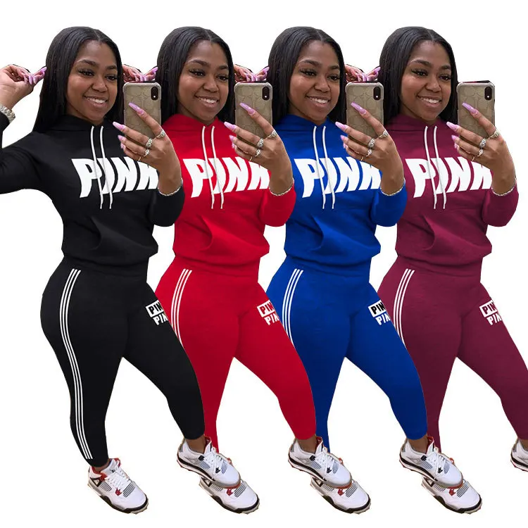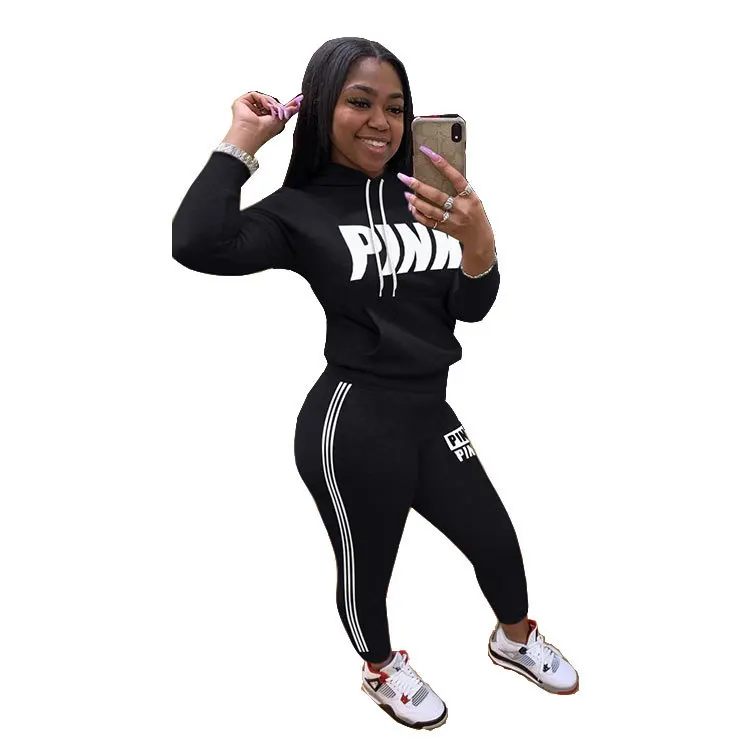Best Offer Pink Letter Print Fashion Casual Women's 2 Piece Set Clothing Long Sleeve Autumn Hoodies Top Long Pants Sportswear