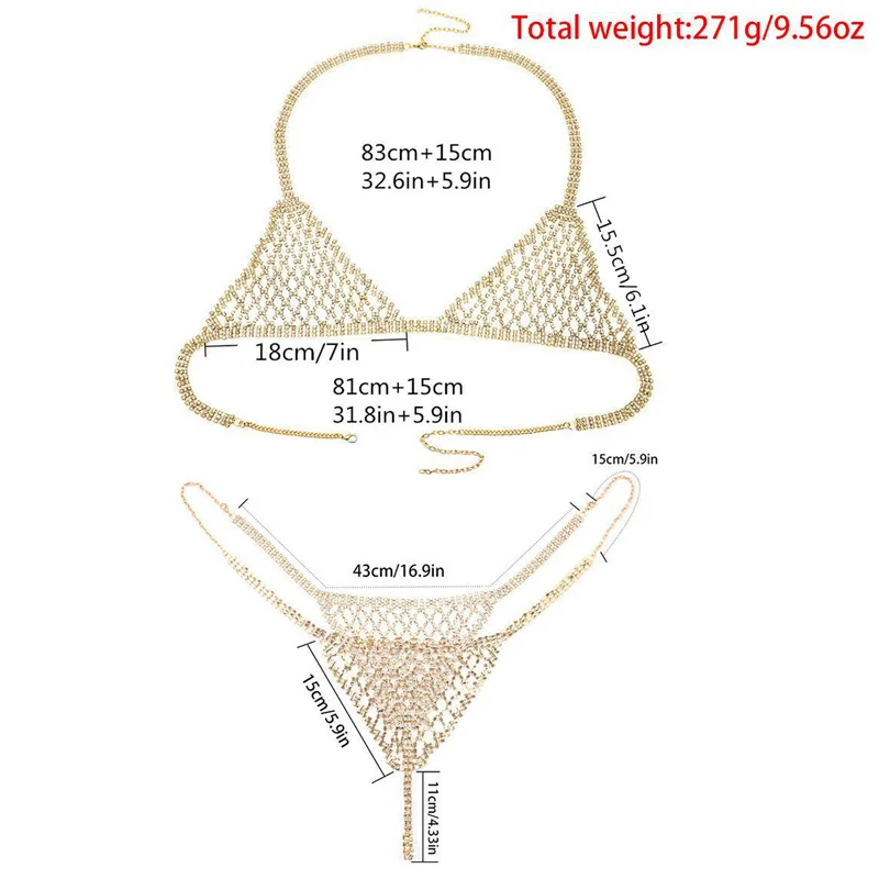 Images of Rhinestone Chain Bra Bralette Bikini Lingerie Women Nightclub Party Tops Choker Necklace Burning Man Festival Wear Jewelry :