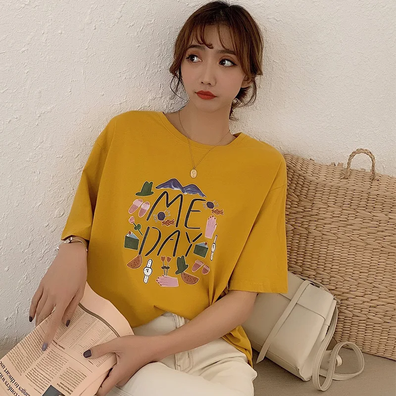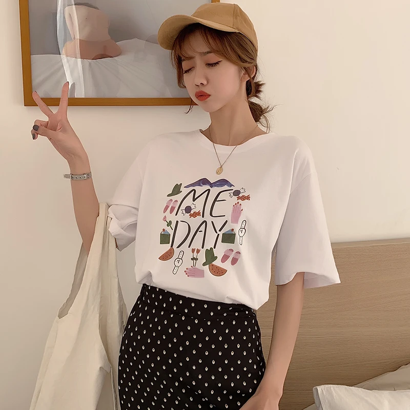 Buy Graphics Print Cotton Large Size T-shirt 2020 New Short Sleeves Tops Tees Summer T Shirt Harajuku Chic Female Fashion Pullover