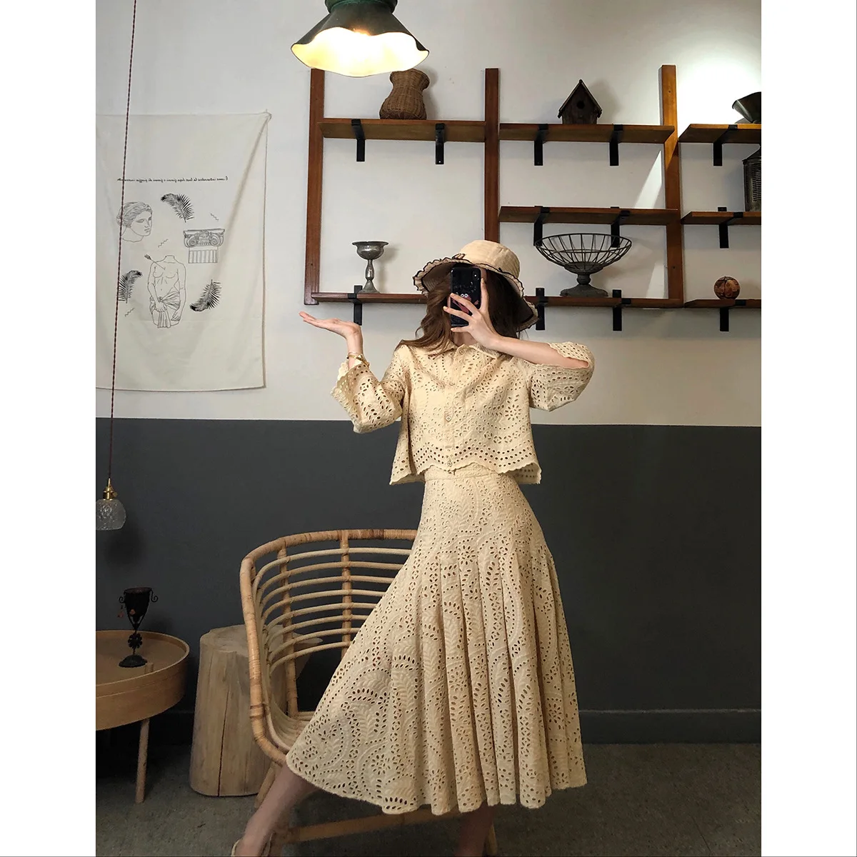 Images of 2020 Autumn Suit Women Fashion Western Style Hollow Waist Coat + Skirt Heavy Industry Embroidery Temperament Was Thin Two-piece :