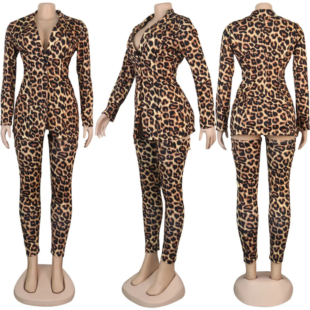 New Sexy Two Pieces Set Turn Down Collar Long Coat + Long Socks Camouflage Peacock Green Leopard Print Womens Tracksuit Set Winter
