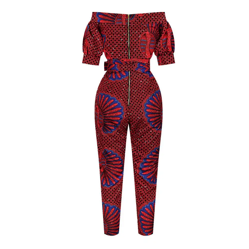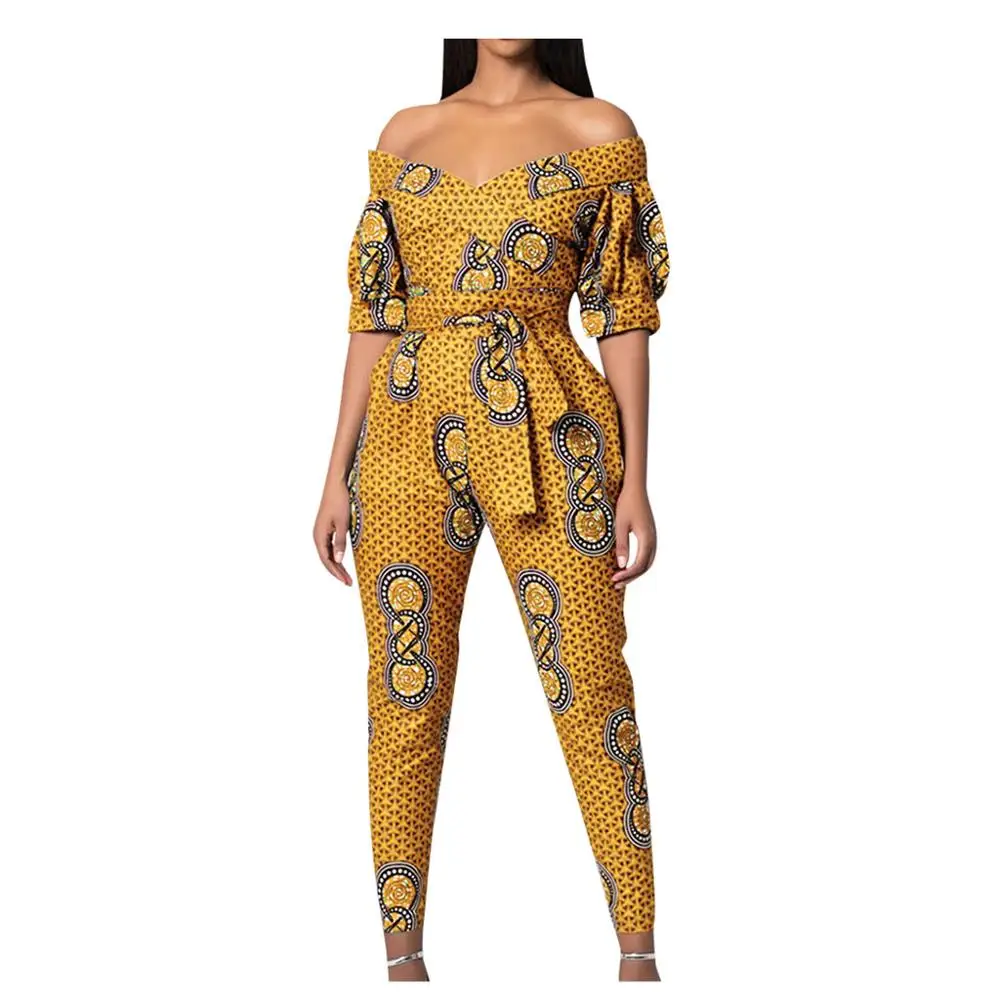 Buy Print Women Jumpsuits Fashion Sexy Off Shoulder Mid Sleeve Cropped Rompers Overalls Monos de Fiesta 2020 New Hot Drop Shipping E