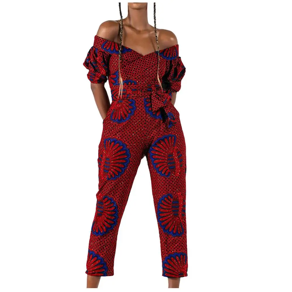 Images of Print Women Jumpsuits Fashion Sexy Off Shoulder Mid Sleeve Cropped Rompers Overalls Monos de Fiesta 2020 New Hot Drop Shipping E :