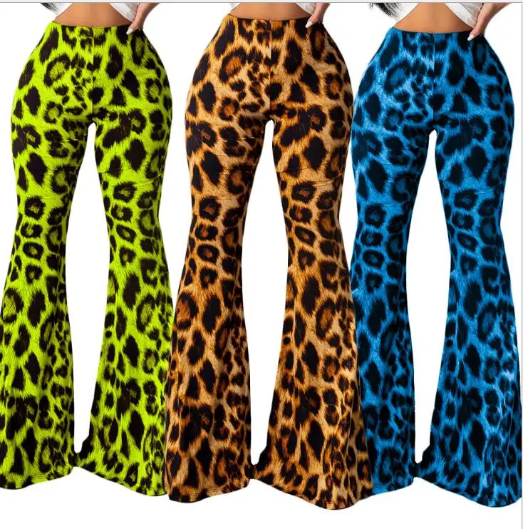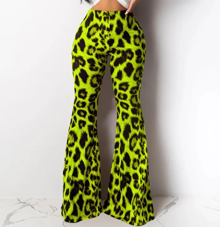 Promo 2020 cool girl hip pop Rock Leopard Print High Waist Flare Pants Suit Female Dance dancing show animal sexy seduction trousers