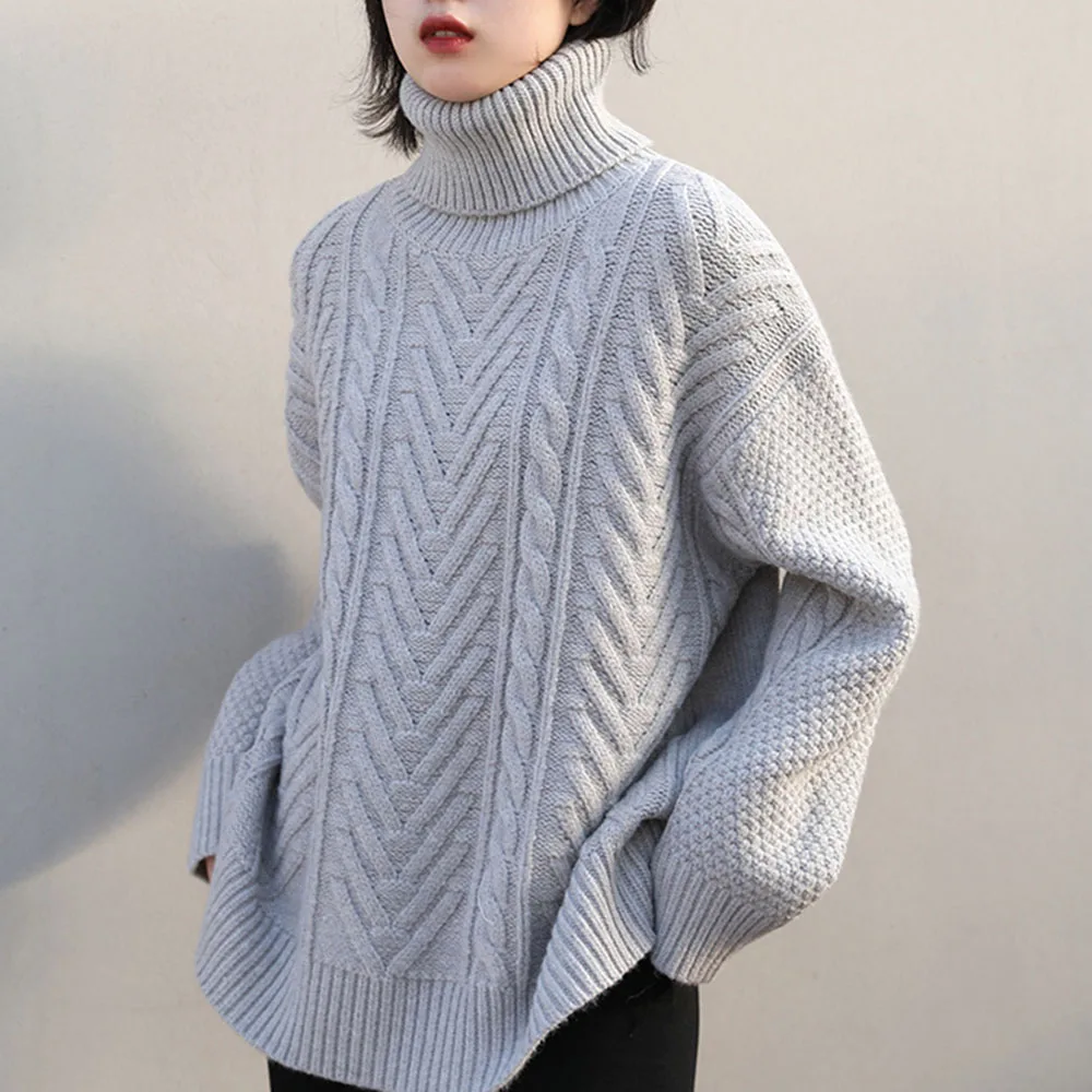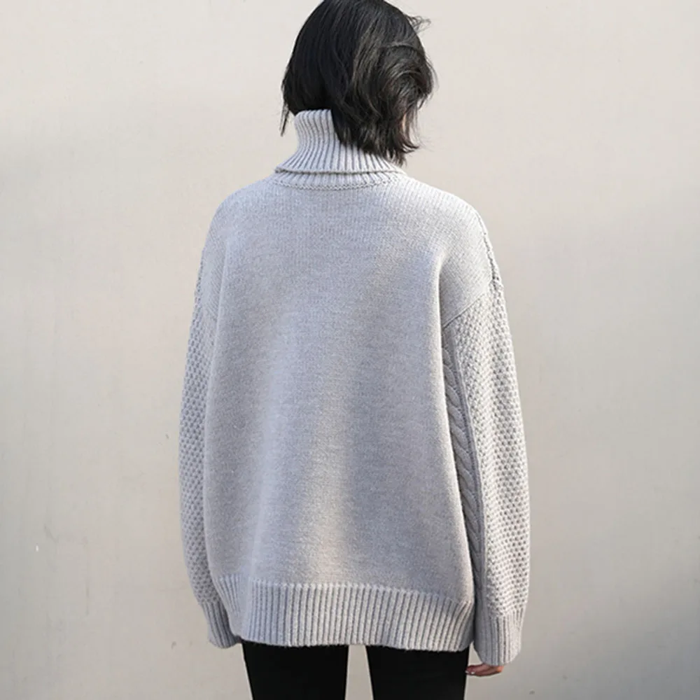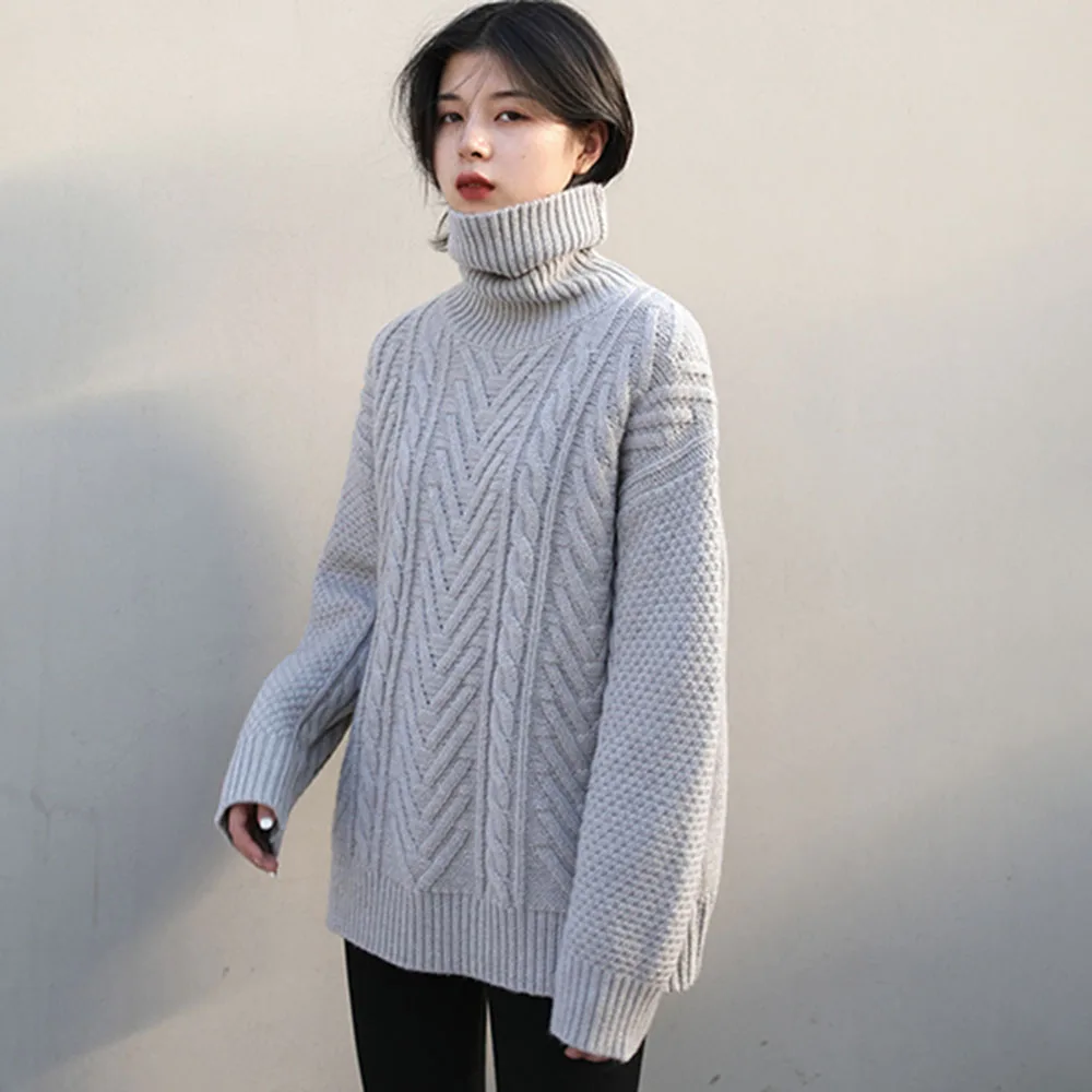 Images of 2020 Spring Women Turtleneck Pullovers Sweaters Female Oversize Long Sleeve Japanese Korean Sweater Knit Wear Minimalist Style :