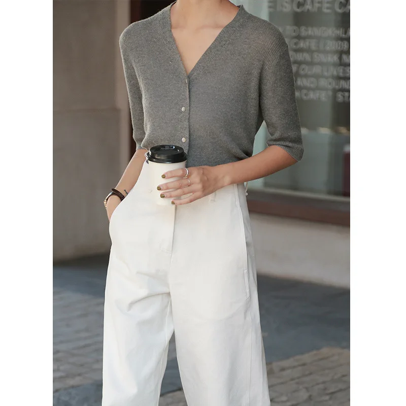 Get this Office Lady Women's Knitted Cardigans 38% Wool+16%Alpaca 2020 Spring Half Sleeve Designer Women Sweaters High Quality with limited time discount by pressing the button below