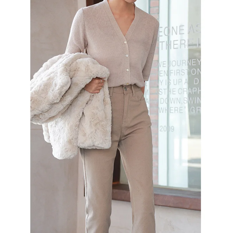 Best Offer Office Lady Women's Knitted Cardigans 38% Wool+16%Alpaca 2020 Spring Half Sleeve Designer Women Sweaters High Quality