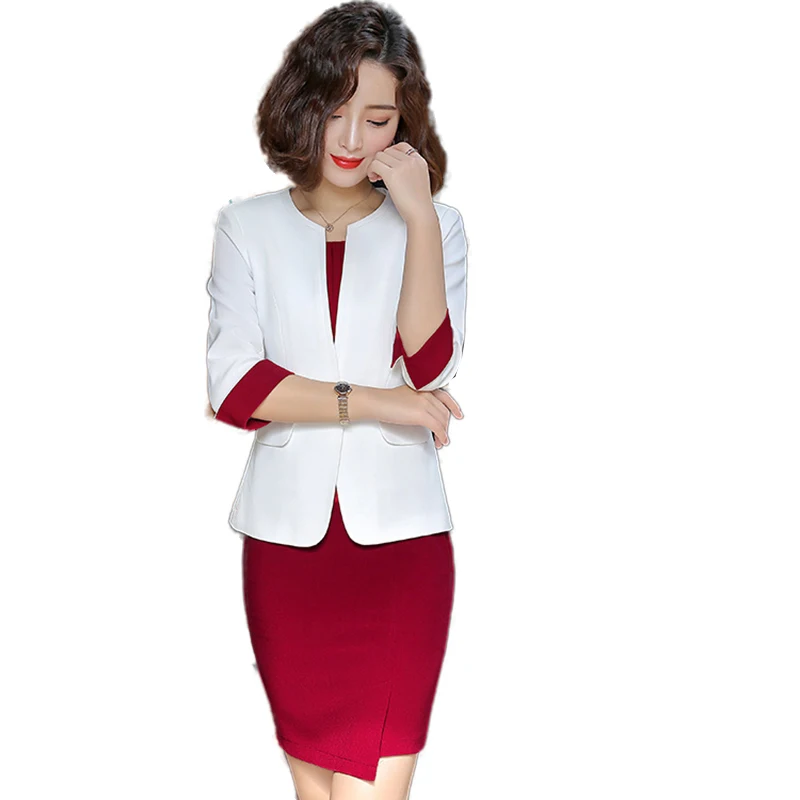 Buy Wine Red Formal Dress Blazer Women Dresses with Jacket Women Dress Suit Set Office Wear Work for Ladies Evening Elegant Costumes