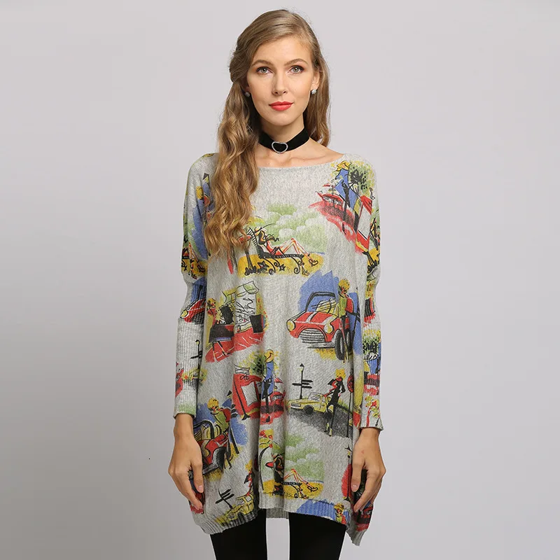 New Autumn Winter Sweater Women Casual Prined Knitting Pullovers Slash Neck Bat Sleeve Ladies Loose Jumpers Tops New 2020 Pull Femme