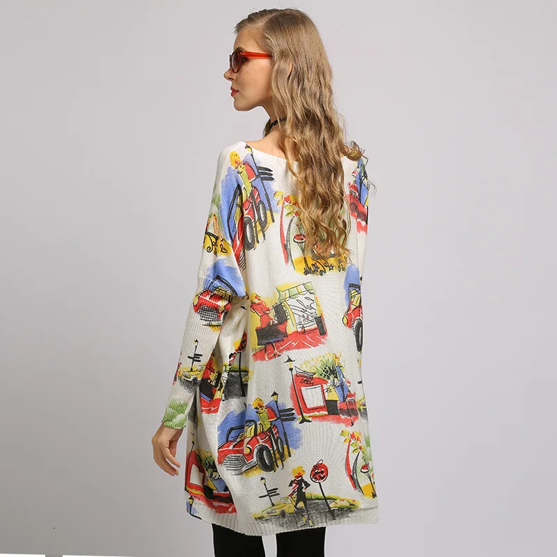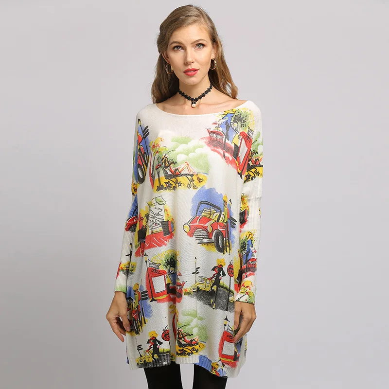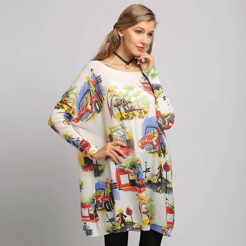Images of Autumn Winter Sweater Women Casual Prined Knitting Pullovers Slash Neck Bat Sleeve Ladies Loose Jumpers Tops New 2020 Pull Femme :